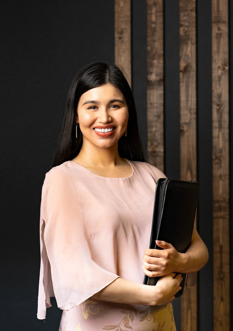 wear something that reflects your role and fells comfortable. Solid colors photograph best.